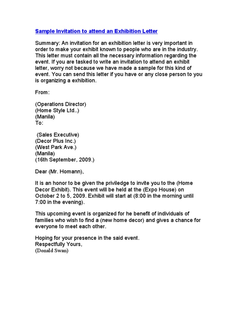 Invitation Letter To A Trade Exhibition Writeletter2 Com