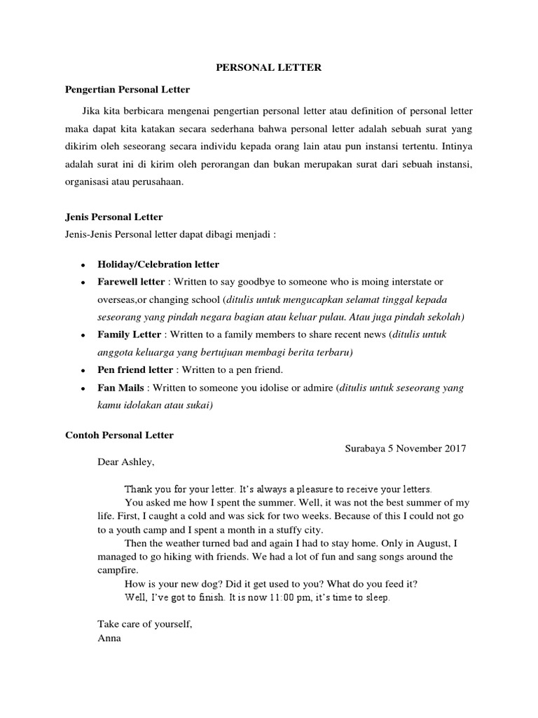 Contoh Personal Letter Dalam Bahasa Inggris Dan Artinya Temukan Contoh