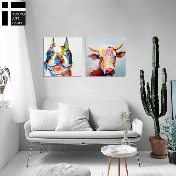絵画 おしゃれ かわいい インテリア 絵 牛と犬の絵 ブルドッグ 壁掛け 人気 サル ひまわり テレビドラマ使用 手書きの油絵 :f-1080:ART LAB Yahoo!店 - 通販 - Yahoo!ショッピング