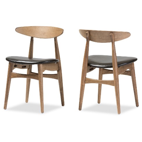 Set Of 2 Edna Mid Century Modern French Black Faux Leather Oak Light Brown Finishing Wood Dining Chairs Baxton Studio Target