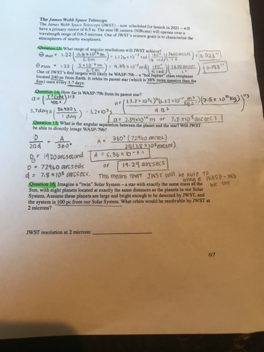 Solved: The James Webb Space Telescope The James Webb Spac... | Chegg.com